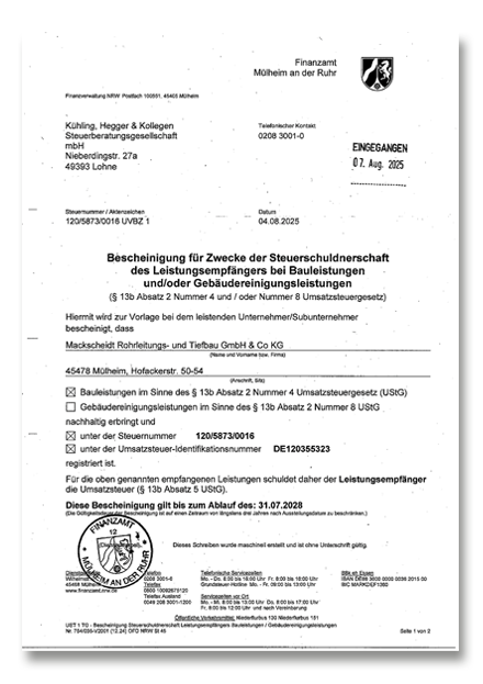 Nachweis Steuerschuldnerschaft